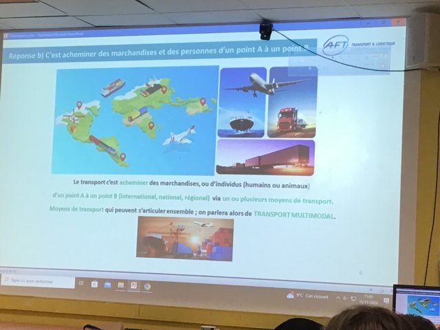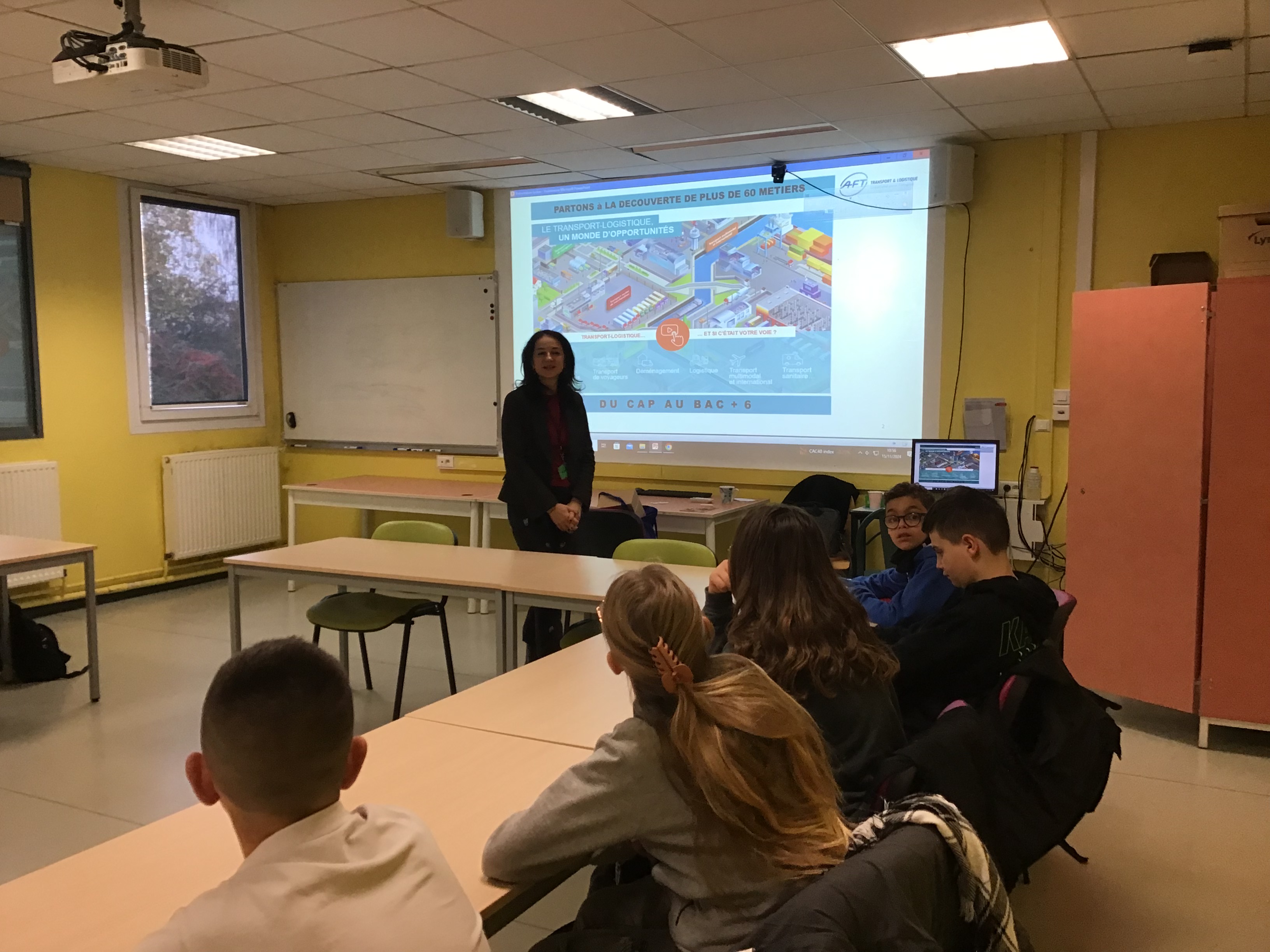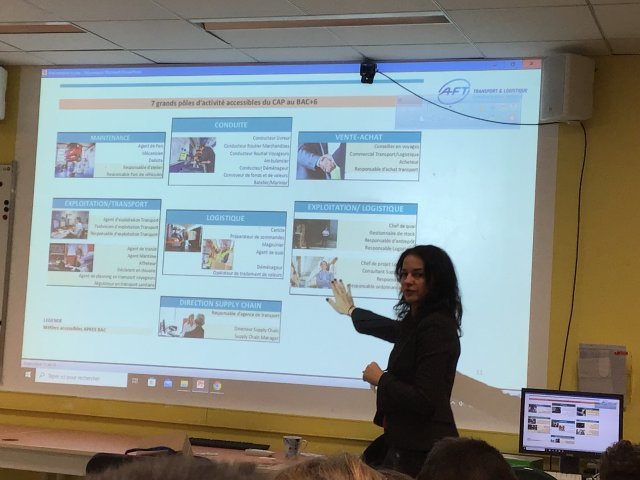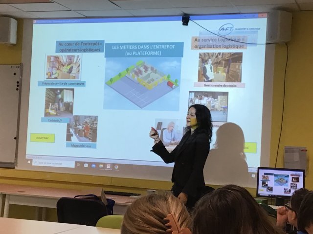 Vendredi 15 novembre 2024, Mme MARTINOVIC de l’AFT Ile de France est venue au collège pour présenter les métiers du Transport et de la Logistique à deux classes de quatrième dans le cadre de leur Parcours Avenir.