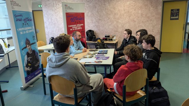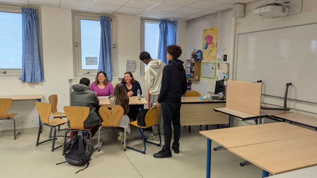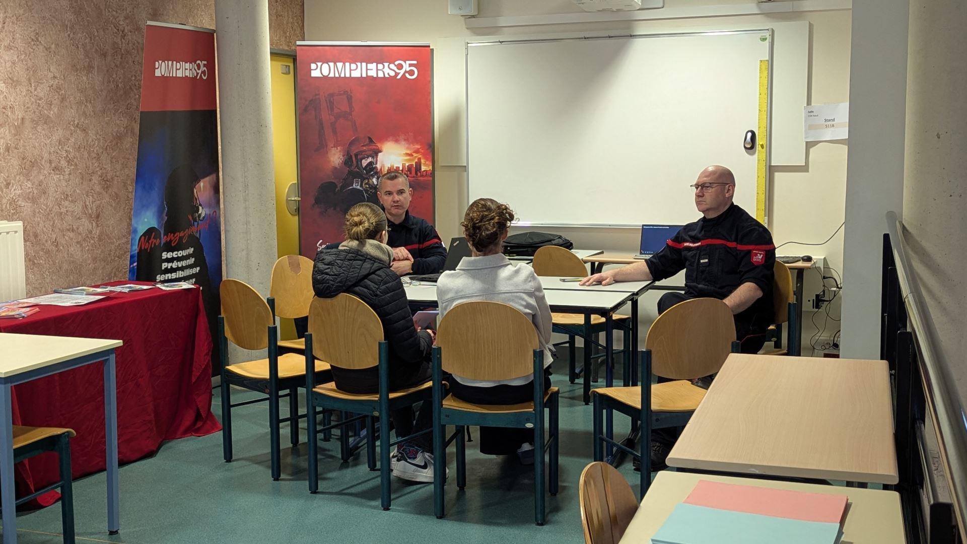 Des élèves de la filière sécurité du lycée de Chars étaient également à nos côtés pour assurer l’accueil des jeunes et des professionnels (accueil café, installation), pour aider les élèves lors de leurs déplacements entre les entretiens et pour sécuriser les points d’entrée du collège.