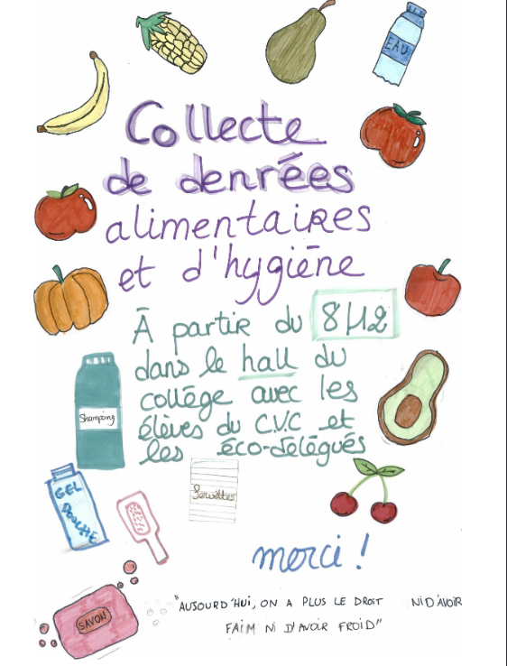 Le CVC et les éco-délégués organisent une collecte de denrées alimentaires et de produits d’hygiène (...)